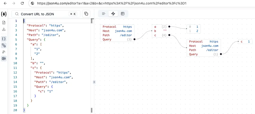 In web development and API testing, parameters are often passed through the URL query string. Converting a URL to JSON can help you quickly understand the information in the URL and improve your development and testing efficiency.